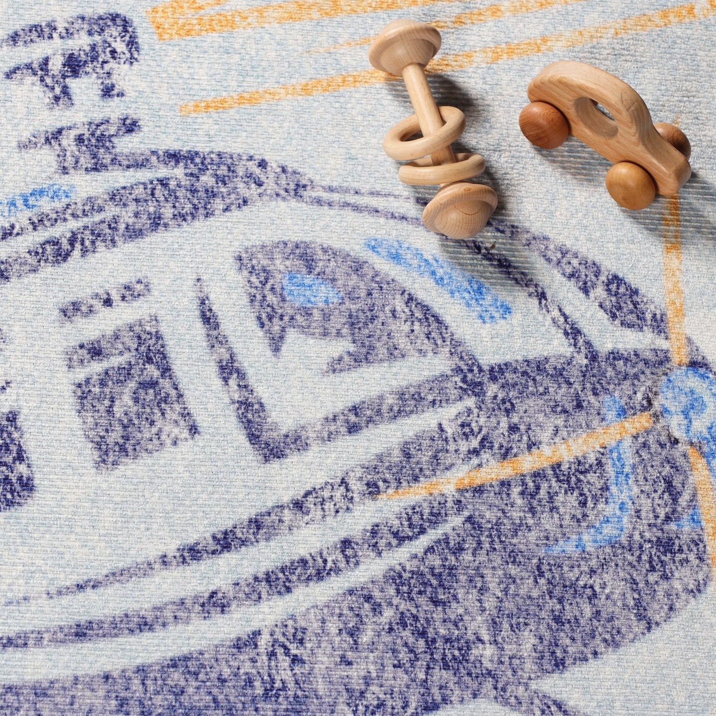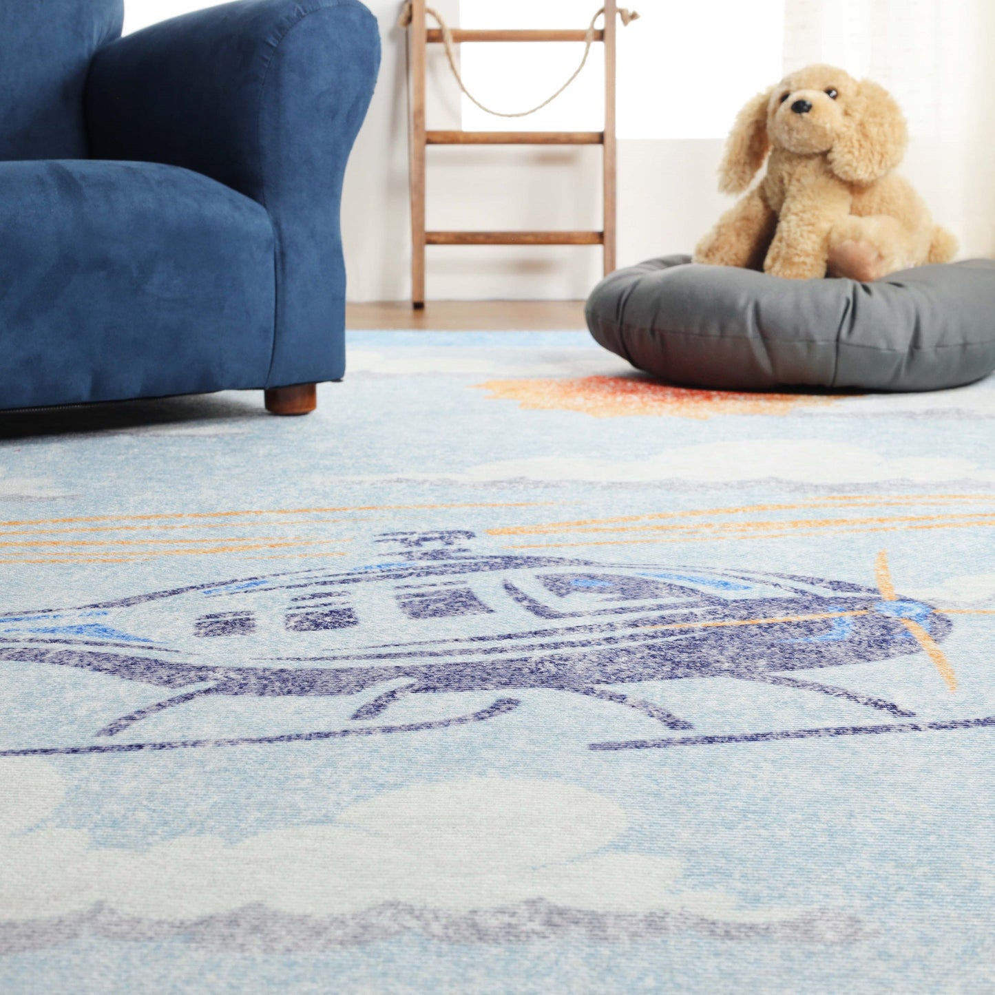 Dress up your playroom with the Playful Helicopter Kids Power-Loomed Indoor Area Rug. This exceptional area rug adds a splash of fun to your home style. The Polyester construction is incredibly durable while being soft and comfortable. This beautiful area rug can handle the most frequented indoor areas of your home, including the kitchen, family room, basement, and entryway. Finished with a well-made Cotton canvas backing, this rug is a long-lasting and durable option for homes with children and pets (rug pad recommended).