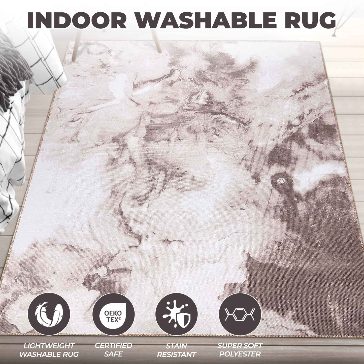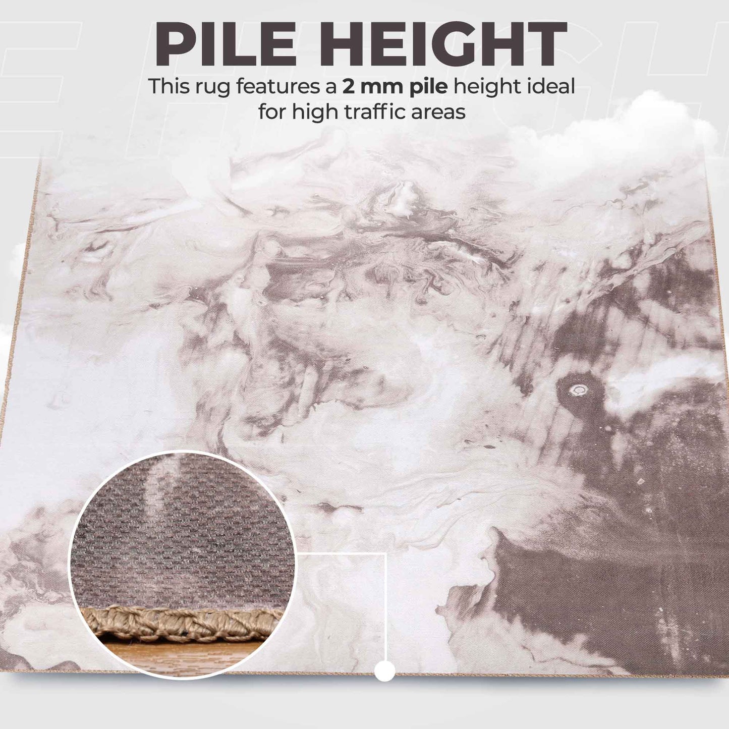 Elevate the style and ambience of your home or office with the Superior Yuma Indoor Area Rug. Inspired by the beauty of marble, this rug displays an abstract pattern over an earthy palette. This rug is the perfect piece to add dimension to your floors. Crafted from durable polyester, this indoor area rug provides just the right amount of comfort underfoot with it's thin and flexible rug thickness. This luxurious rug provides much needed relief from cold tile or hardwood floors and can be rolled or folded for easy storage. Available in beige and brown color options, this rug is a durable and long-lasting option for homes with children and pets.